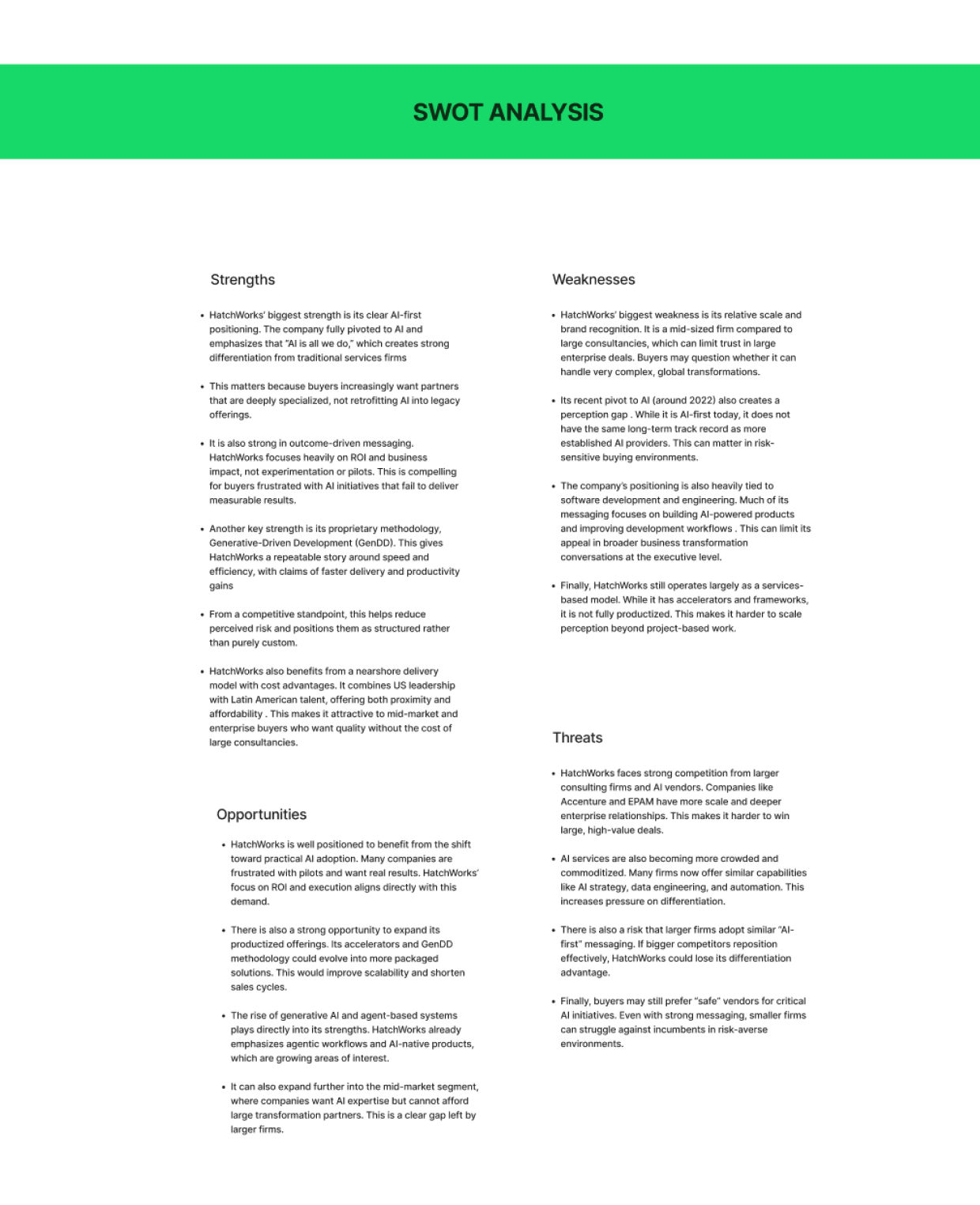 Hatchworks.AI SWOT analysisThe Pitch Deck