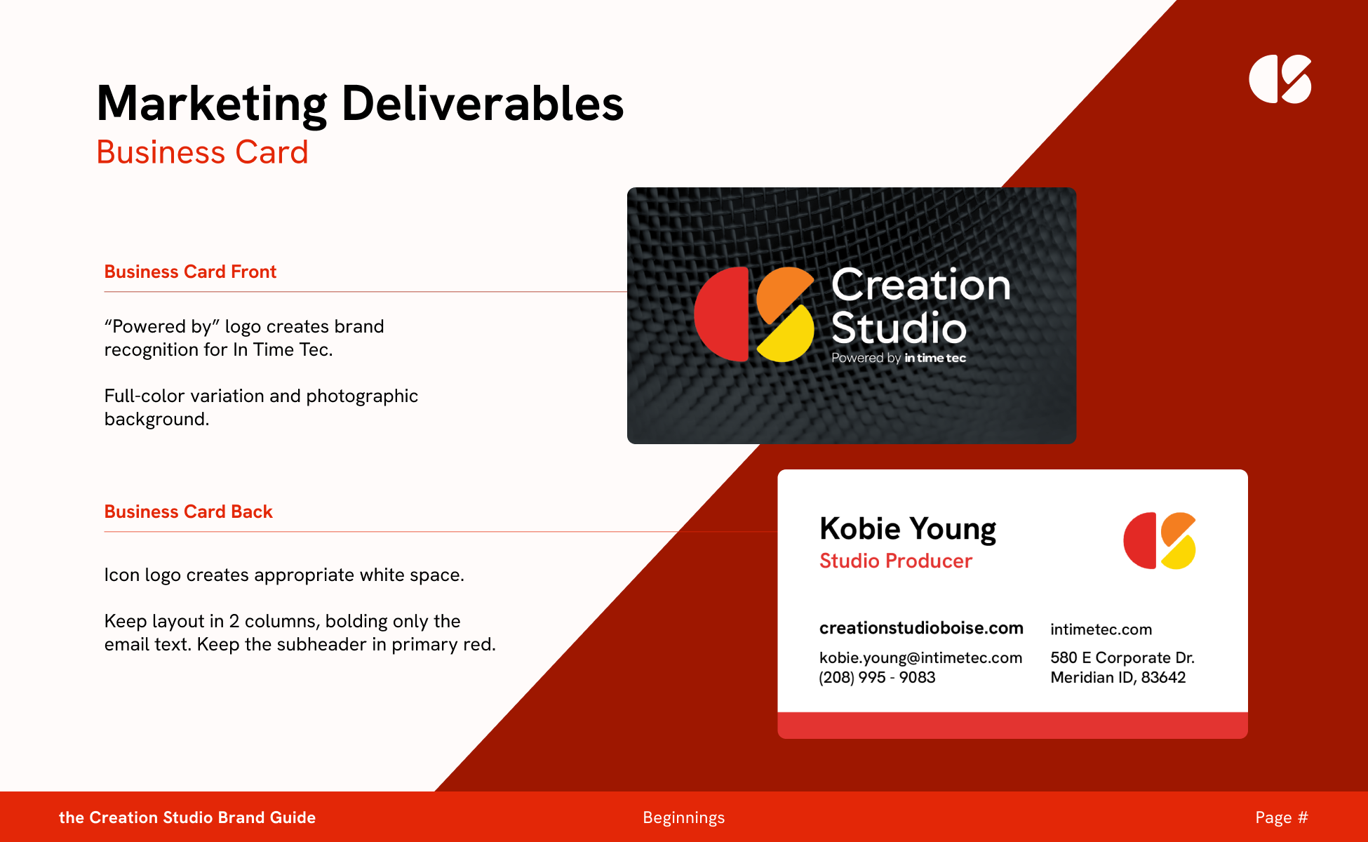 The semi circle references held a lot of meaning for the Creatio Studio. It paired well with the In Time Tec logo, while also nodding to the physical space of the Creation Studio itself.