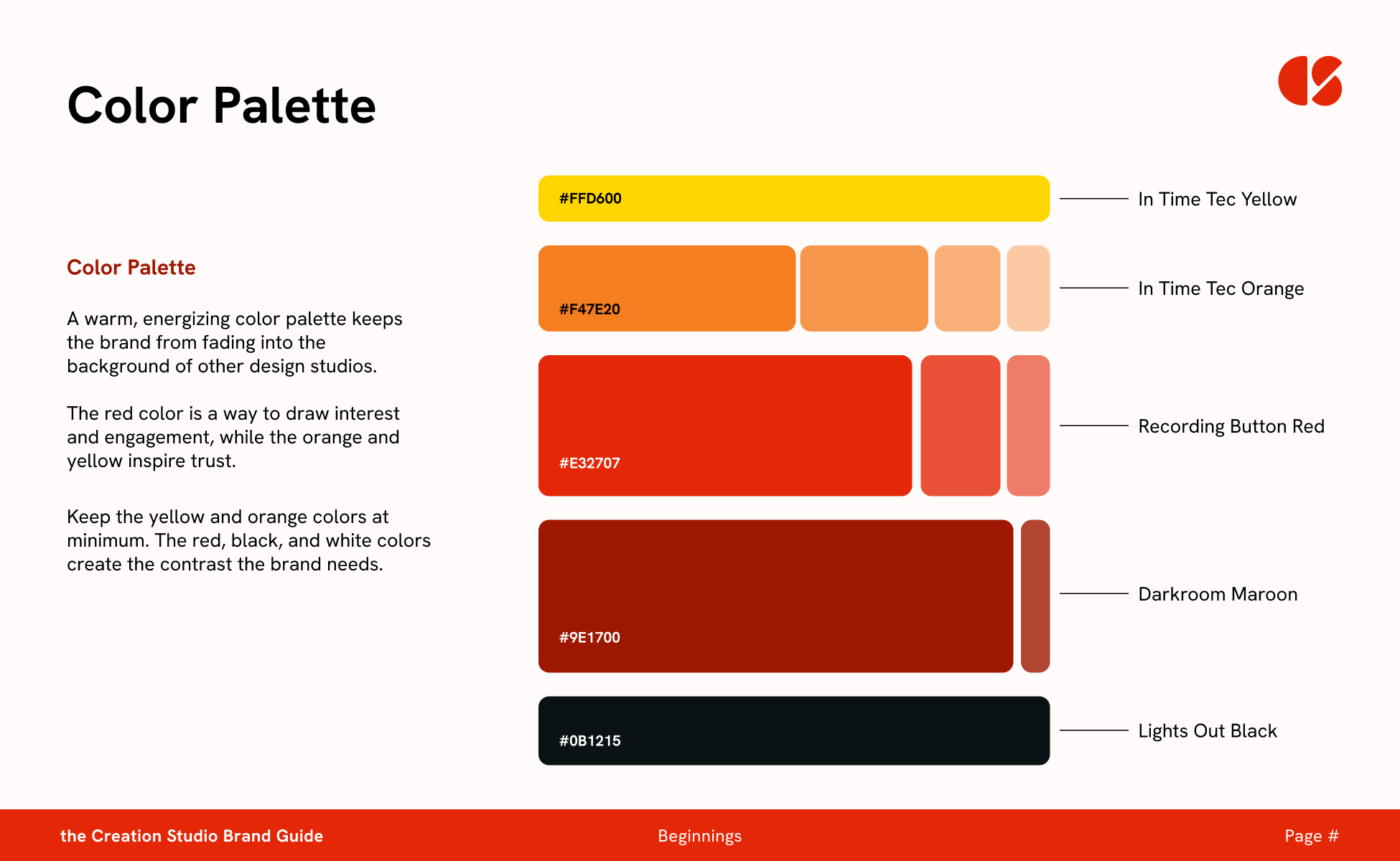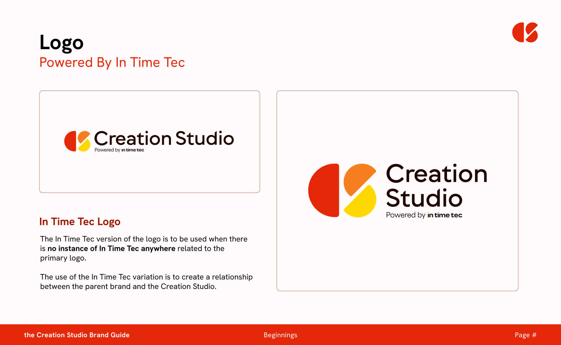 The Creation Studio needed its own identity; however, it was powered by its parent company, In Time Tec, and needed a word mark with a similar tone and feeling. The idea was to create a wordmark that references the In Time Tec logo and keeps a similar feel to the parent brand while maintaining its own standing.