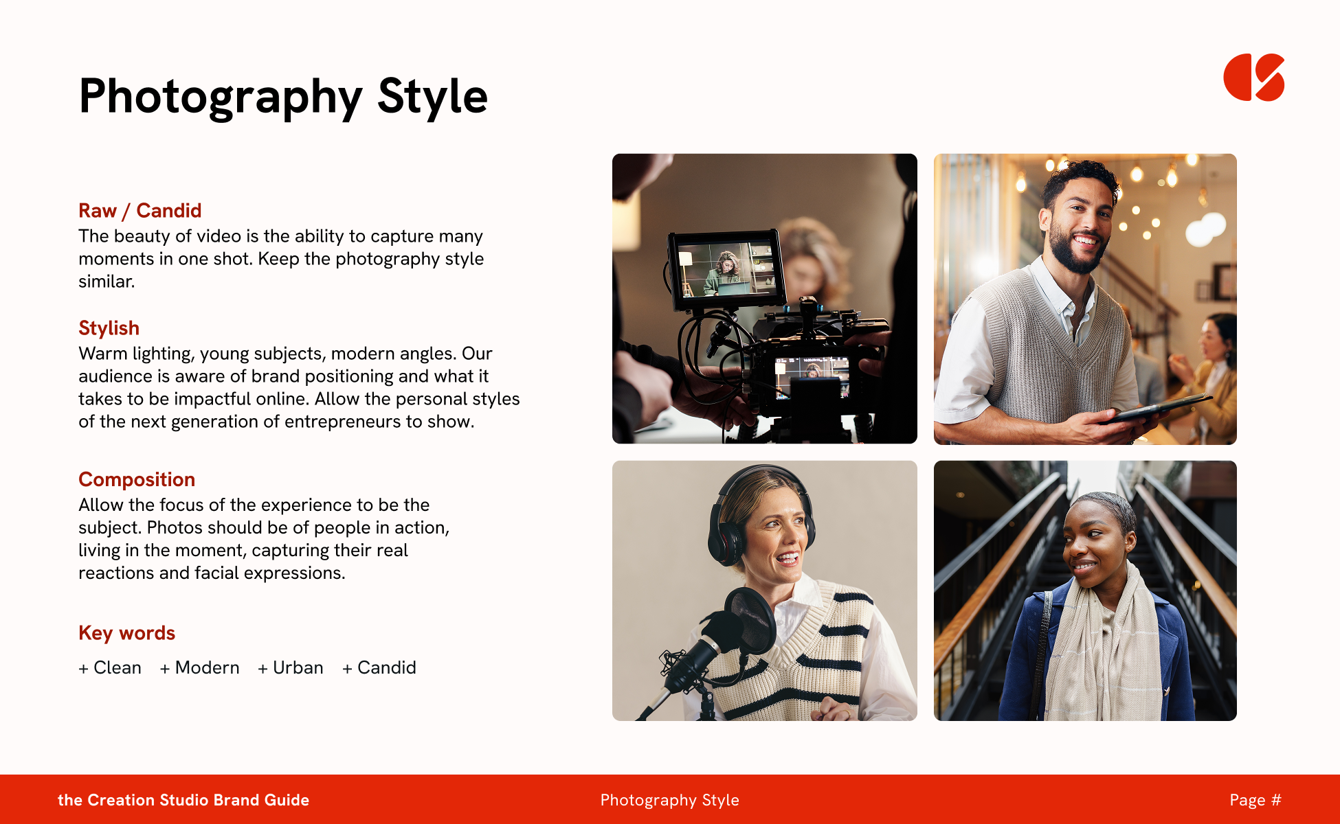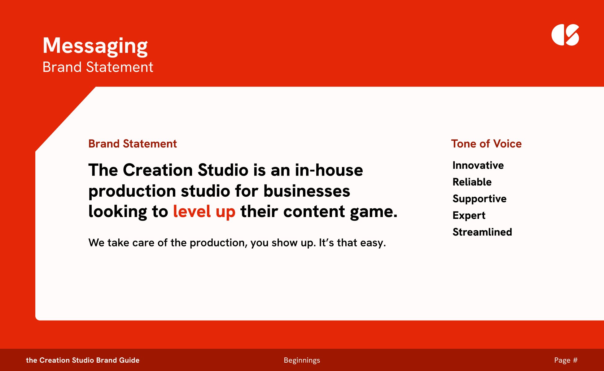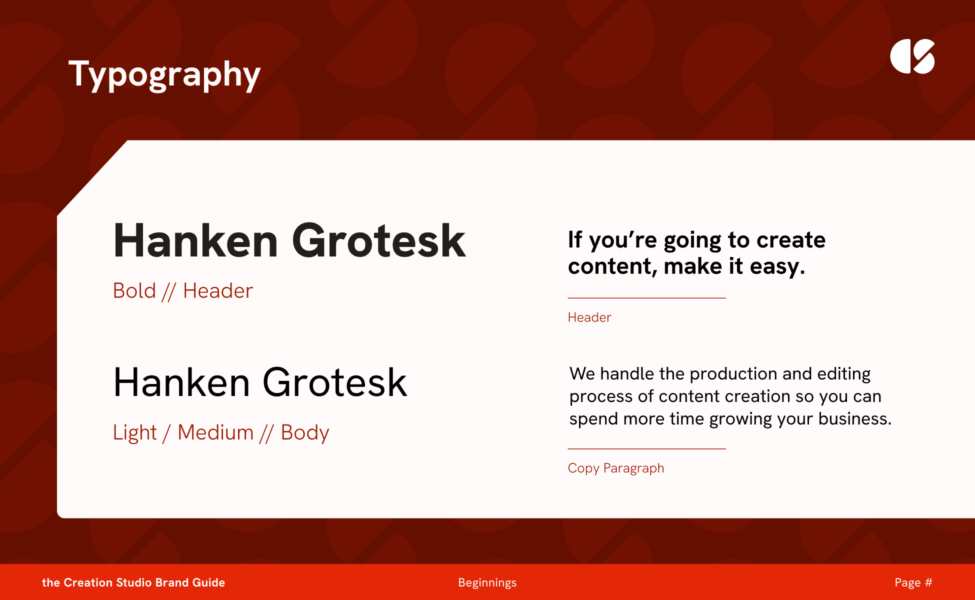 Through iterative processes of drafting the logo, I landed on an abstract representation of the C and the S in the name Creation Studio. It felt balanced, open, and invited the viewer to imagine themselves as a blank canvas.